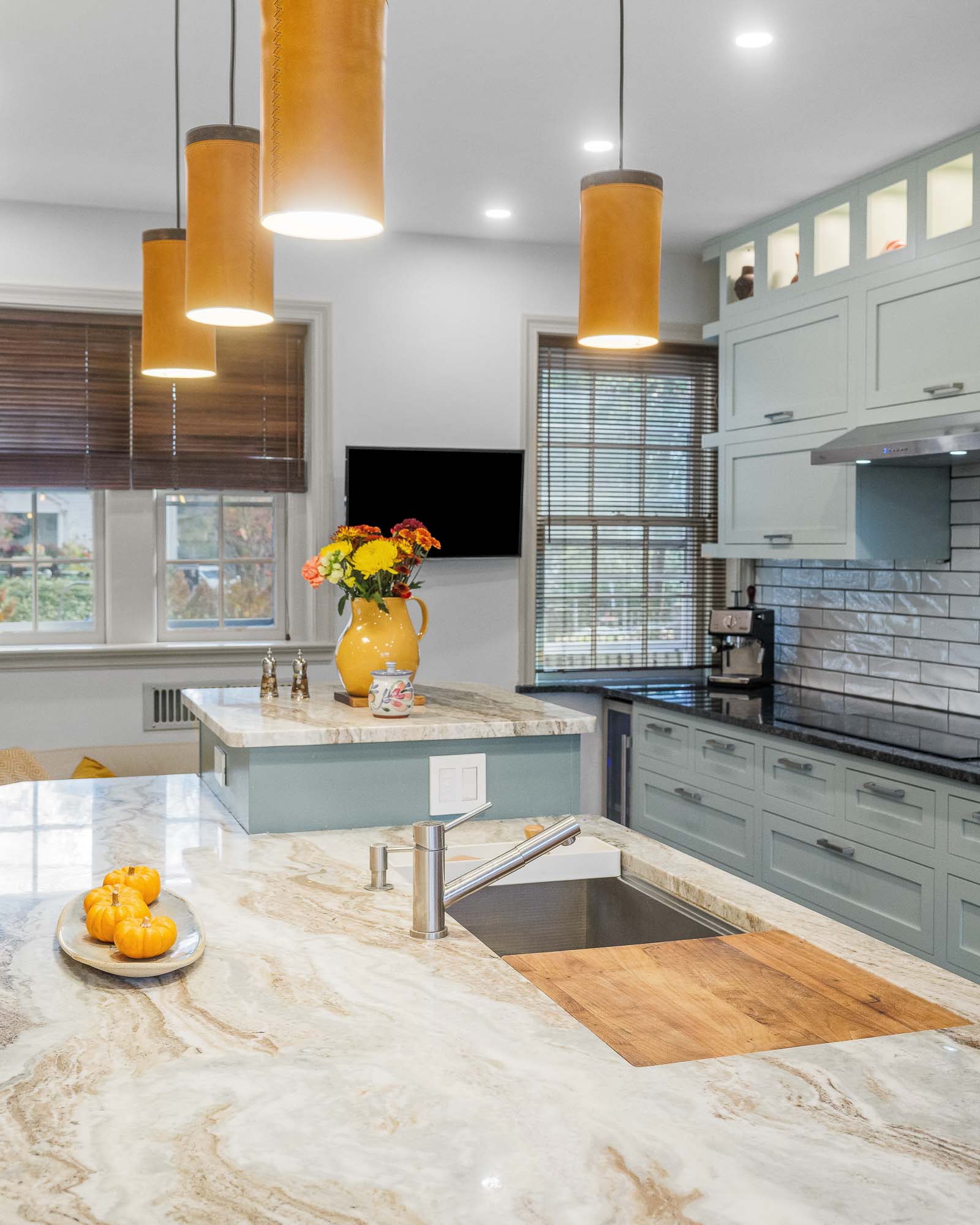 The transformation centers on a generous island, surrounded by custom cabinetry that provides multiple prep and serving zones. The new layout maximizes natural light, improves flow, and incorporates discreet storage throughout. Additional features include a pantry, lounge area, dog-food station, and an offset powder room—creating a warm, functional space that truly feels like a welcome home.
